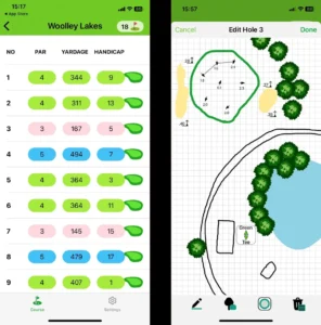 Use the App to create greens and fairway drawings for all your favorite golf courses. First, enter Par, Yardage and Handicap for each hole on the course. Then add hole charts for each hole like this example.